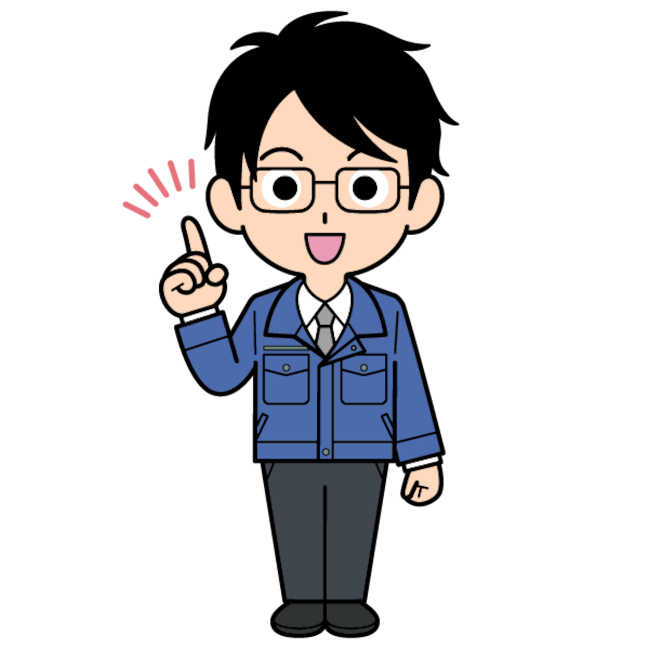 指差しするメガネをかけた営業マンのイラスト【全身】 | ユウイチロウイラスト
