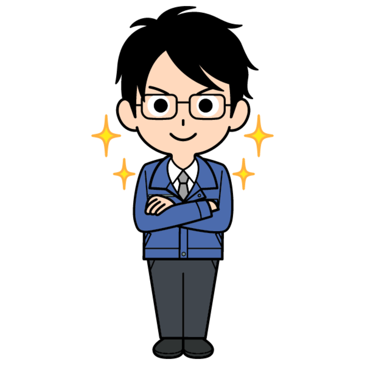 自信満々なメガネをかけた営業マンのイラスト【全身】 | ユウイチロウイラスト