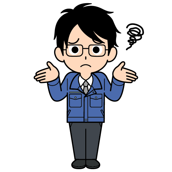 困惑するメガネをかけた営業マンのイラスト【全身】 | ユウイチロウイラスト