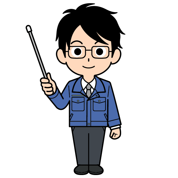 指し棒を持つメガネをかけた営業マンのイラスト【全身】 | ユウイチロウイラスト