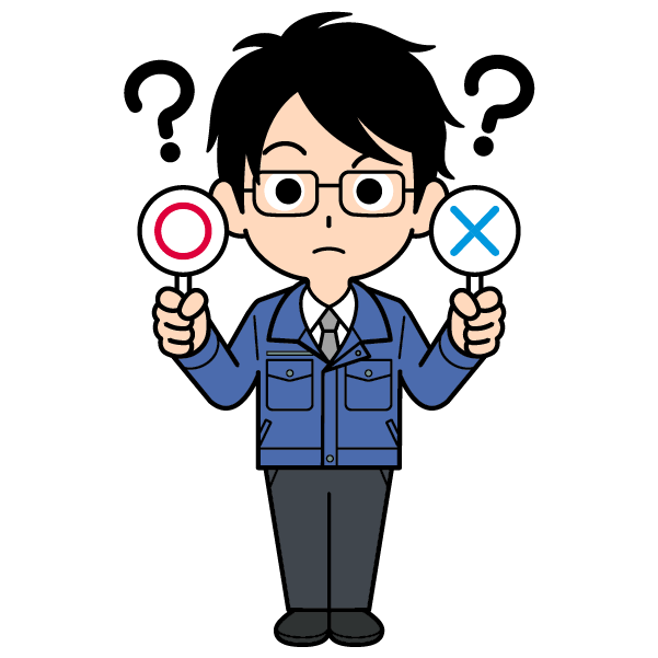 マルバツ札を持つメガネをかけた営業マンのイラスト【全身】 | ユウイチロウイラスト