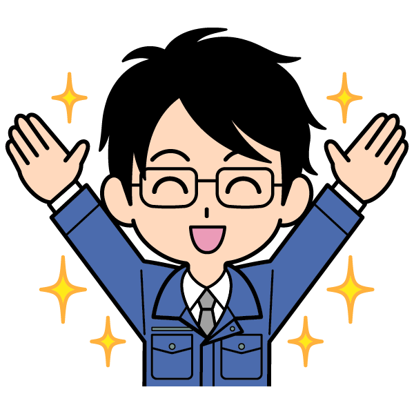 喜んでいるメガネをかけた営業マンのイラスト【上半身】 | ユウイチロウイラスト