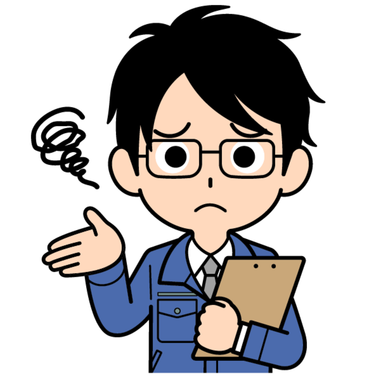 バインダーを持って困惑するメガネをかけた営業マンのイラスト【上半身】